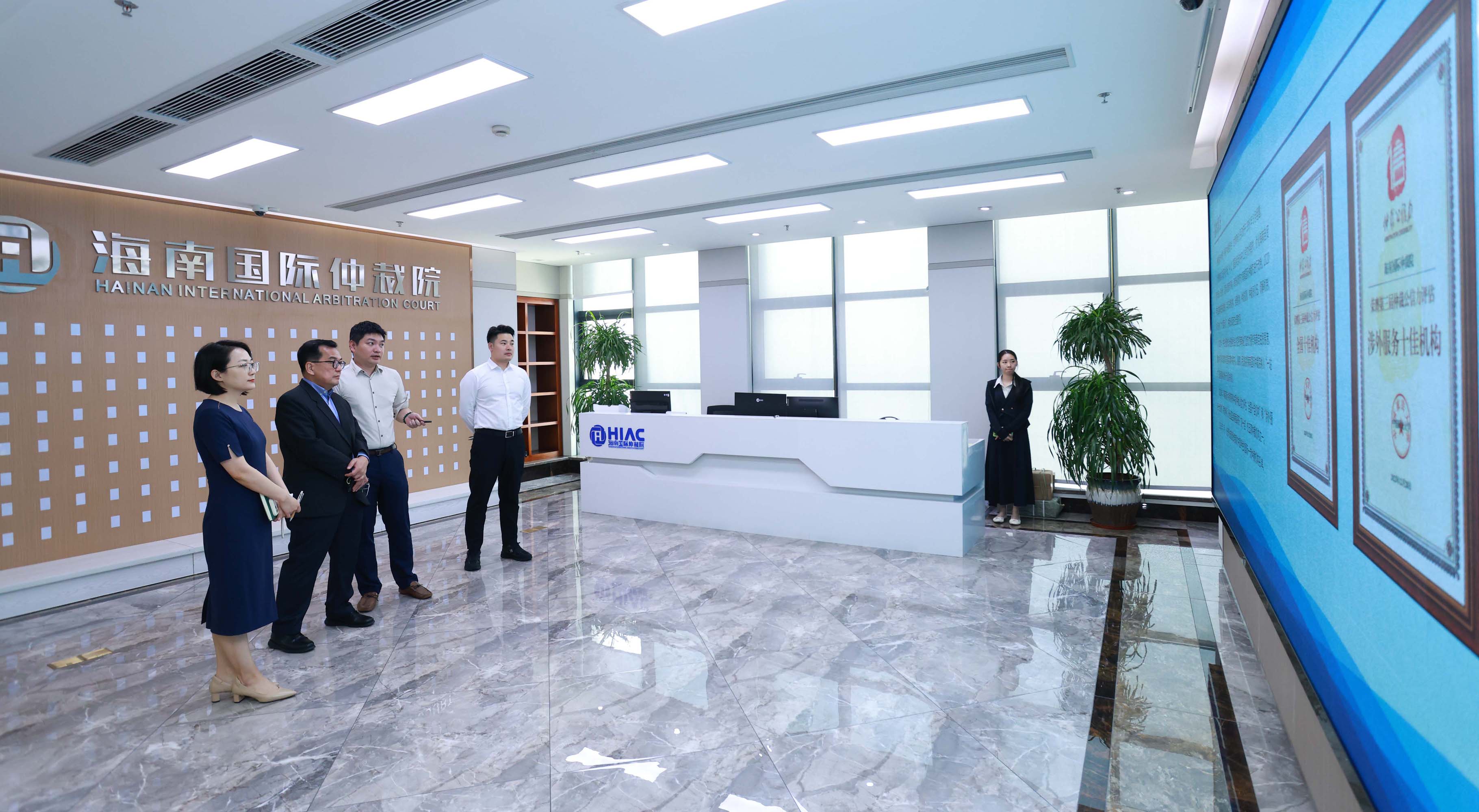 海南国际仲裁院有关部门负责人等参加座谈。座谈后,Teck Wah Koh先生实地考察了海南国际仲裁院办公、办案场所。