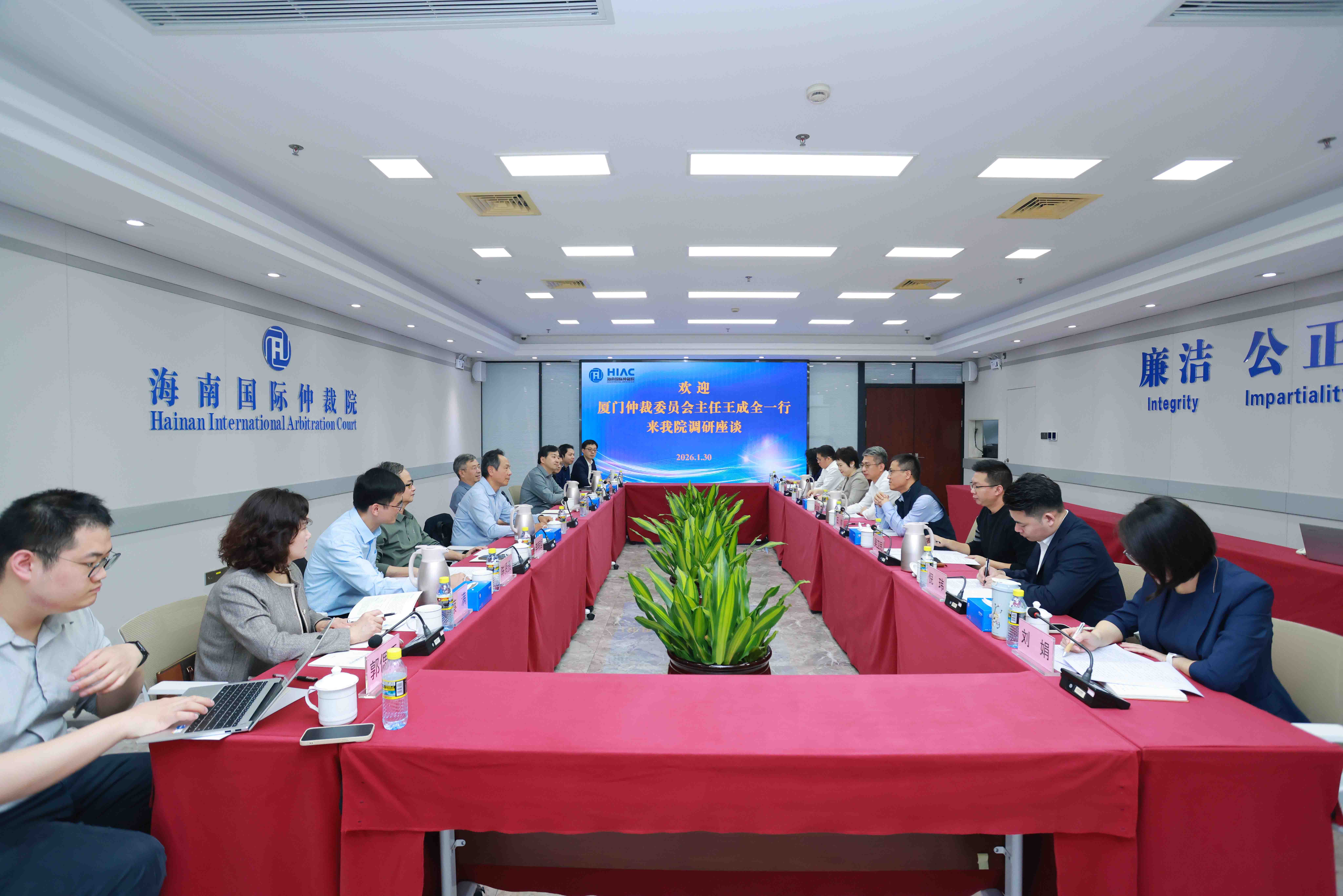 厦门仲裁委员会主任王成全一行来海南国际仲裁院调研座谈